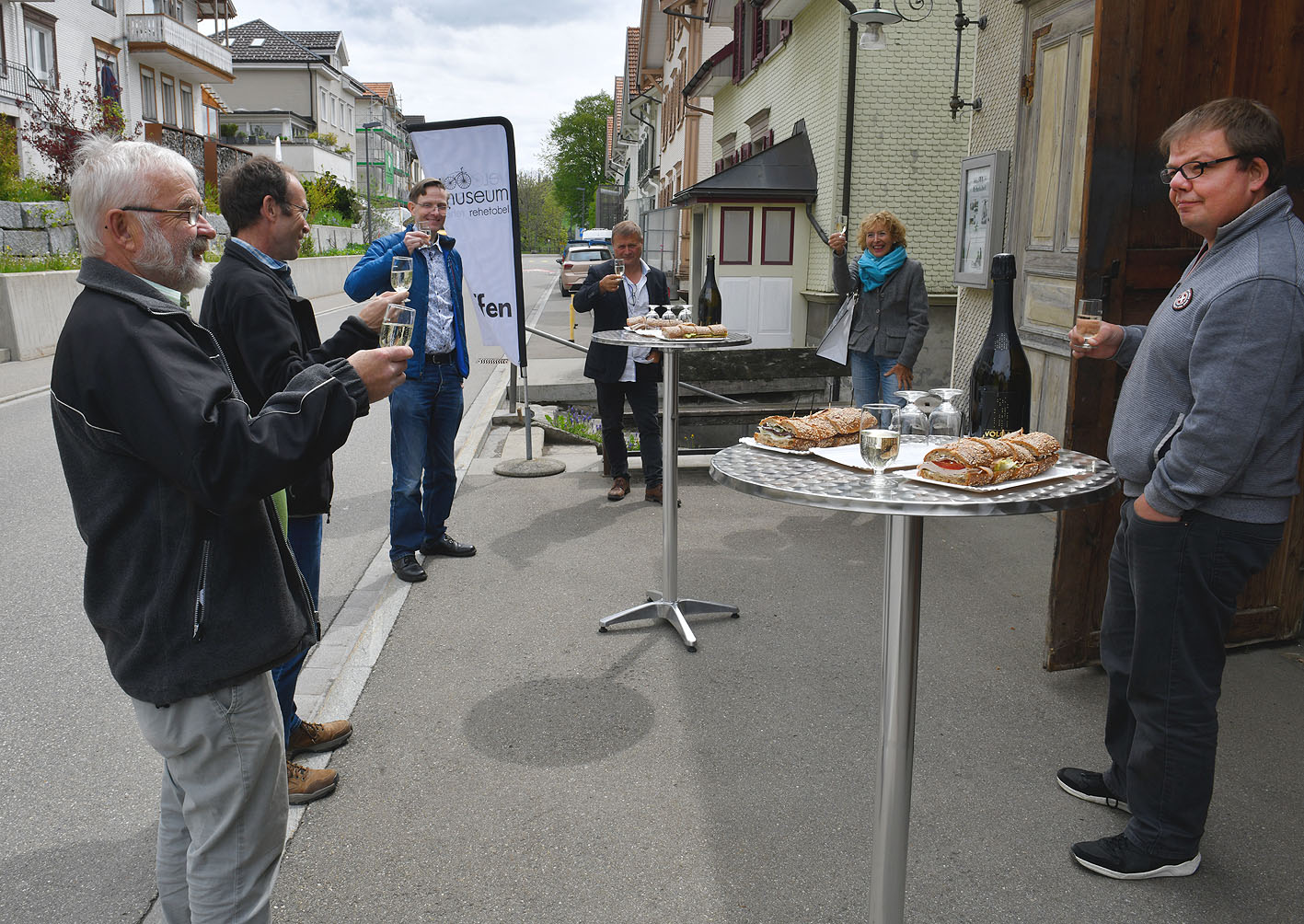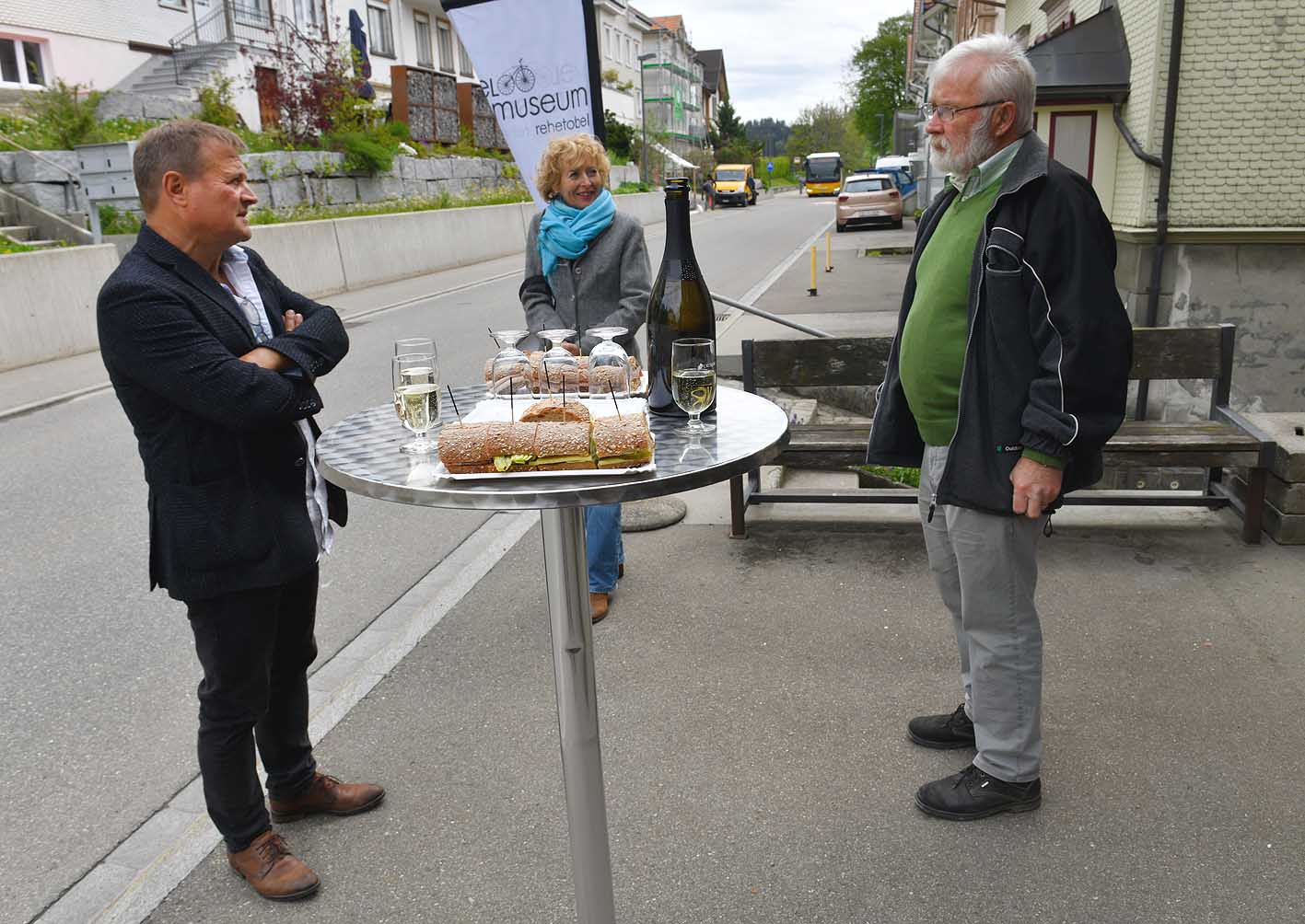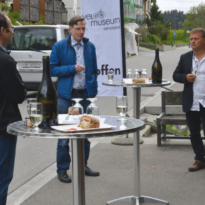 Es war ein grosser Tag für die Beteiligten im Velomuseum Rehetobel, als am 1. Mai das örtliche „Sprötzehuus“ an der Heidenerstrasse von der Gemeinde Rehetobel gekauft und überschrieben wurde. Dies erfolgte im Beisein von Gemeindepräsident Urs Rohner und Gemeindeschreiber Stefan Weber sowie dem Genossenschaftsvorstand. Dass im Anschluss an diese wichtige und erfolgreiche Amtshandlung vor dem Velomuseum ein kleiner Apéro mit all den Teilnehmenden organisiert wurde, ist naheliegend. Denn lange wurde diesem Moment entgegen gefiebert.