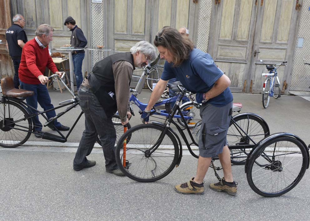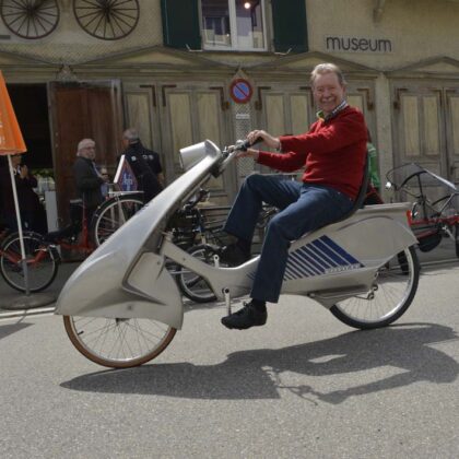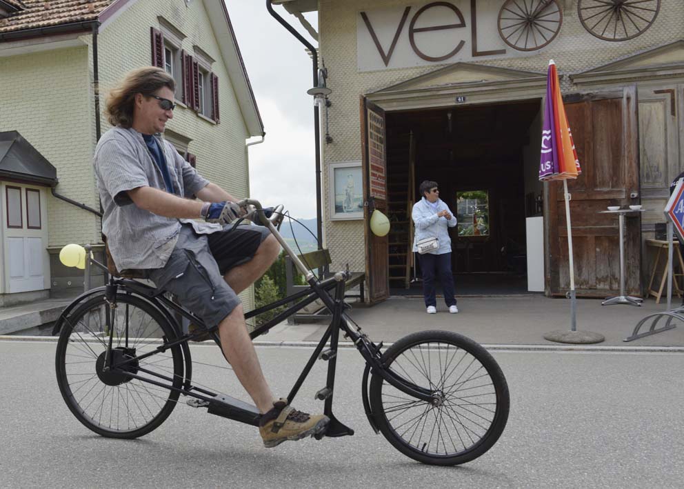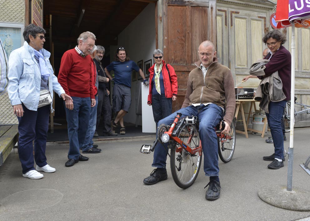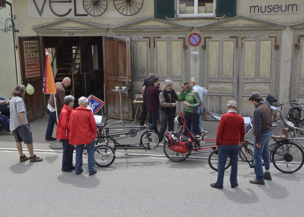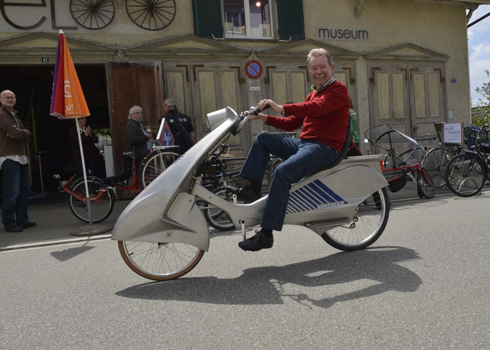 Mit der Art der Durchführung des Museumstages bewiesen die Organisatoren, dass dieses Museum lebt. An diesem Tag fand die Museumsausstellung vor dem Museum statt. So manch ein Besucher konnte das Feeling einer kurzen Fahrt auf einem der Liegevelos auskosten, hatte den Spass daran oder stufte das Erlebnis als eine Erfahrung ein. „Gemütlich liegen und sportlich fahren“ wurde dieser dritte Teil des Museumstages bezeichnet. Ob gemütlich oder sportlich lag an jedem einzelnen Tester, denn Liegevelos haben, je nach Bauart, beim Fahren ihre Tücken. Das Aha-Erlebnis vieler Besucherinnen und Besucher blieb nicht aus, man nahm allerorts zur Kenntnis, dass das Velo nicht nur ein heutiges Transportmittel ist und eben mehr oder weniger trendig. Die Geschichte und Entwicklung des Gerätes bis zurück zum Laufrad stand im Vordergrund.