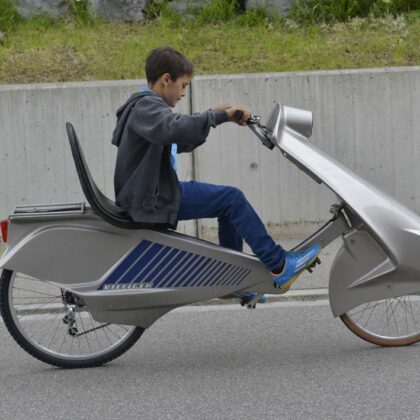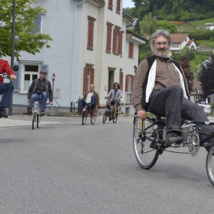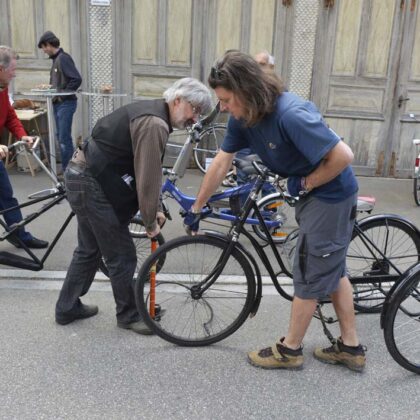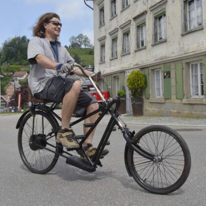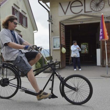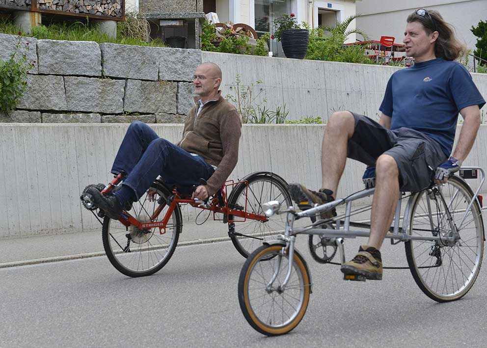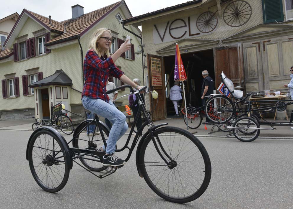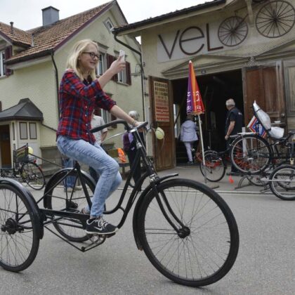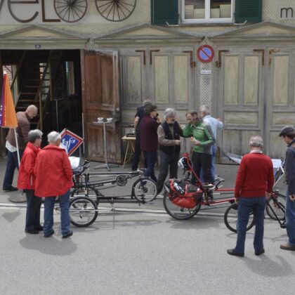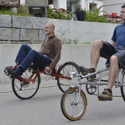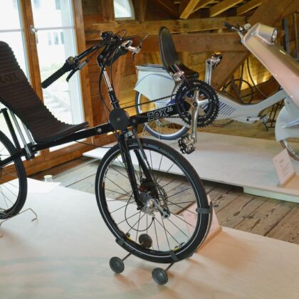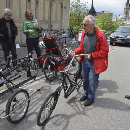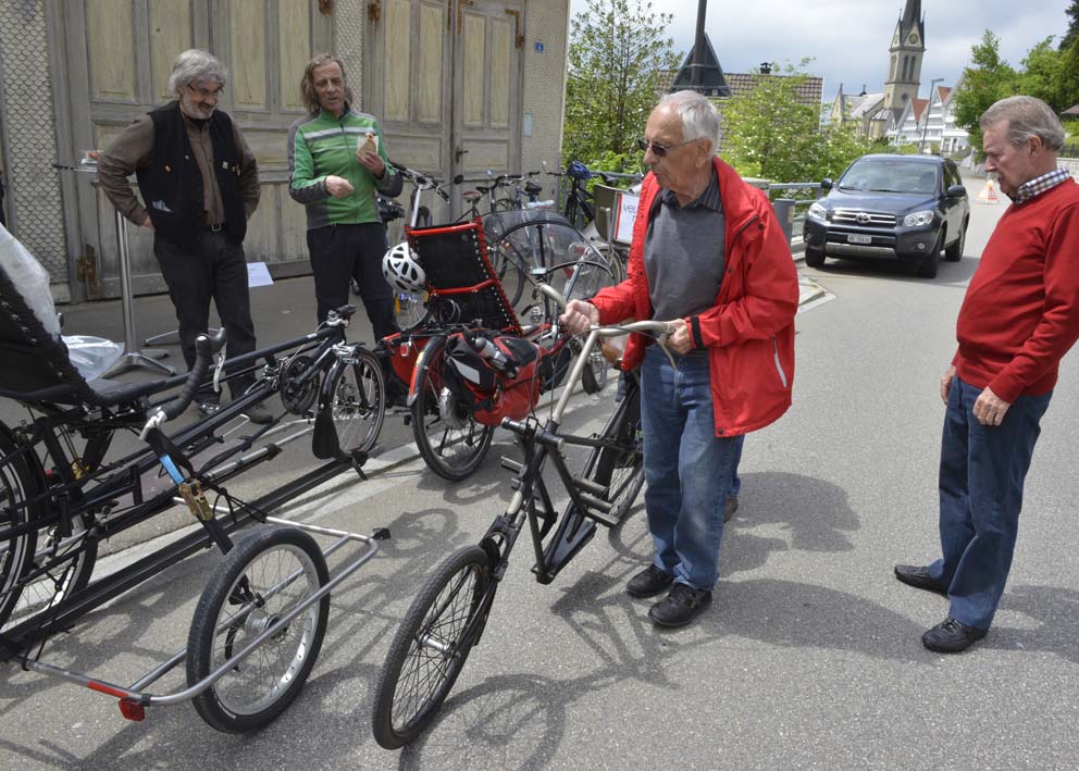 Mit der Art der Durchführung des Museumstages bewiesen die Organisatoren, dass dieses Museum lebt. An diesem Tag fand die Museumsausstellung vor dem Museum statt. So manch ein Besucher konnte das Feeling einer kurzen Fahrt auf einem der Liegevelos auskosten, hatte den Spass daran oder stufte das Erlebnis als eine Erfahrung ein. „Gemütlich liegen und sportlich fahren“ wurde dieser dritte Teil des Museumstages bezeichnet. Ob gemütlich oder sportlich lag an jedem einzelnen Tester, denn Liegevelos haben, je nach Bauart, beim Fahren ihre Tücken. Das Aha-Erlebnis vieler Besucherinnen und Besucher blieb nicht aus, man nahm allerorts zur Kenntnis, dass das Velo nicht nur ein heutiges Transportmittel ist und eben mehr oder weniger trendig. Die Geschichte und Entwicklung des Gerätes bis zurück zum Laufrad stand im Vordergrund.