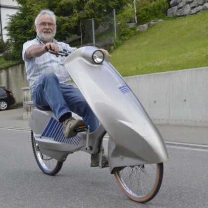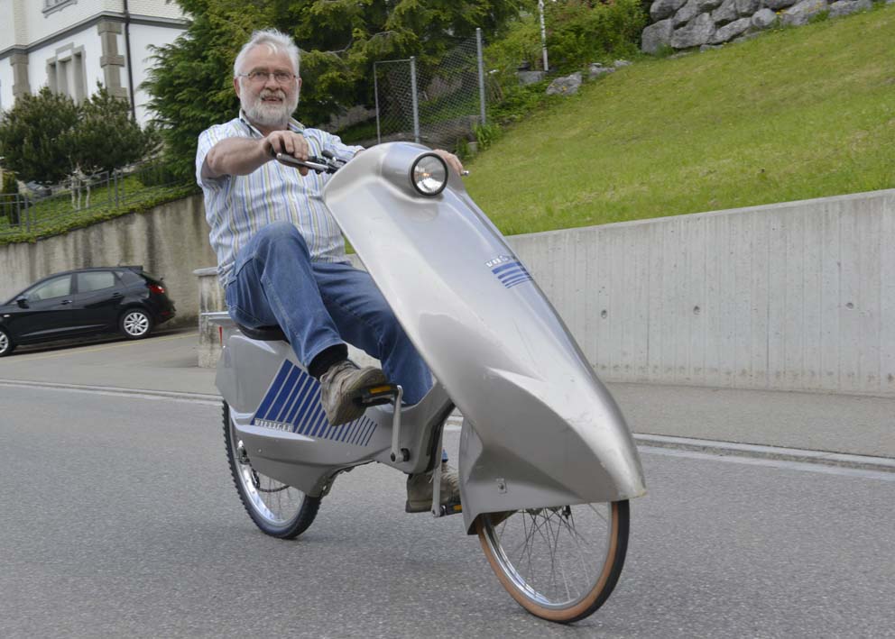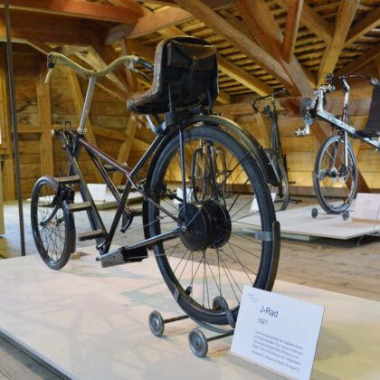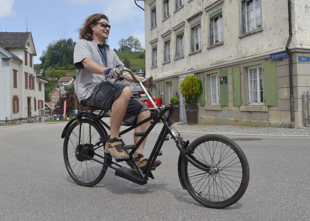 Der Museumstag 2015 gehört der Vergangenheit an. Nach einem Grosseinsatz vor diesem Tag kann sich nun die Belegschaft des Rehetobler Velomuseums wieder entspannen. Doch der Aufwand hat sich gelohnt. Das Interesse der Besucher war vorhanden, zahlreiche Diskussionen zu den Themen Velo, Liegevelo und auch zu dem sich noch neu in der Ausstellung befindenden J-Rad wurden geführt. Mit der Ausstellung „Tiefergelegt: Das Liegerad, die aerodynamische Alternative“ hatten die Ausstellungsmacher unter der Leitung von François Cauderay ein Thema aufgegriffen, das auf der Linie ihrer Neuanschaffung, dem J-Rad liegt. „Das J-Rad, vom Paul Jaray, dem Aerodynamiker der Zeppelinwerke in Friedrichshafen konstruiert. Es gilt als grundlegendste Erfindung und Beginn der Entwicklung von Liegerädern.“ Mit diesem Satz wird das Velo mit Jahrgang 1921 in der Ausstellung beschrieben.