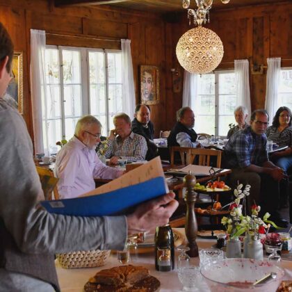 Im Haus „zur Stickerei“ tagte an der diesjährigen HV der Old Bicycle Fan Club Rehetobel. Im Haus, gelegen unterhalb dem Scheidweg zwischen Rehetobel und Heiden, lässt es sich bestens feiern und auch tagen. Etwas über 30 Freundinnen und Freunde des Velomuseums kamen am Sonntag, 8. April dort zusammen. Die Gruppe absolvierte nicht nur den Geschäftlichen, statutarischen Teil, sie pflegte auch die Gemeinschaft, die zwischenmenschlichen Kontakte, das Fachsimpeln über alte Fahrräder und, wie könnte es anders sein, sie genoss auch das Essen. Die Hauptversammlung muss sein und der Brunch hat Tradition. Letzteres wurde wie immer zur allseitigen Zufriedenheit von Hedy Zuberbühler aufbereitet.