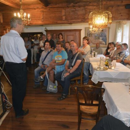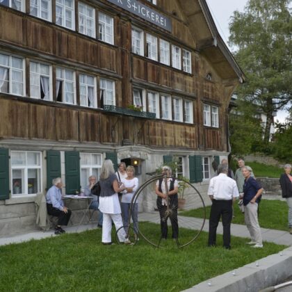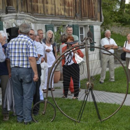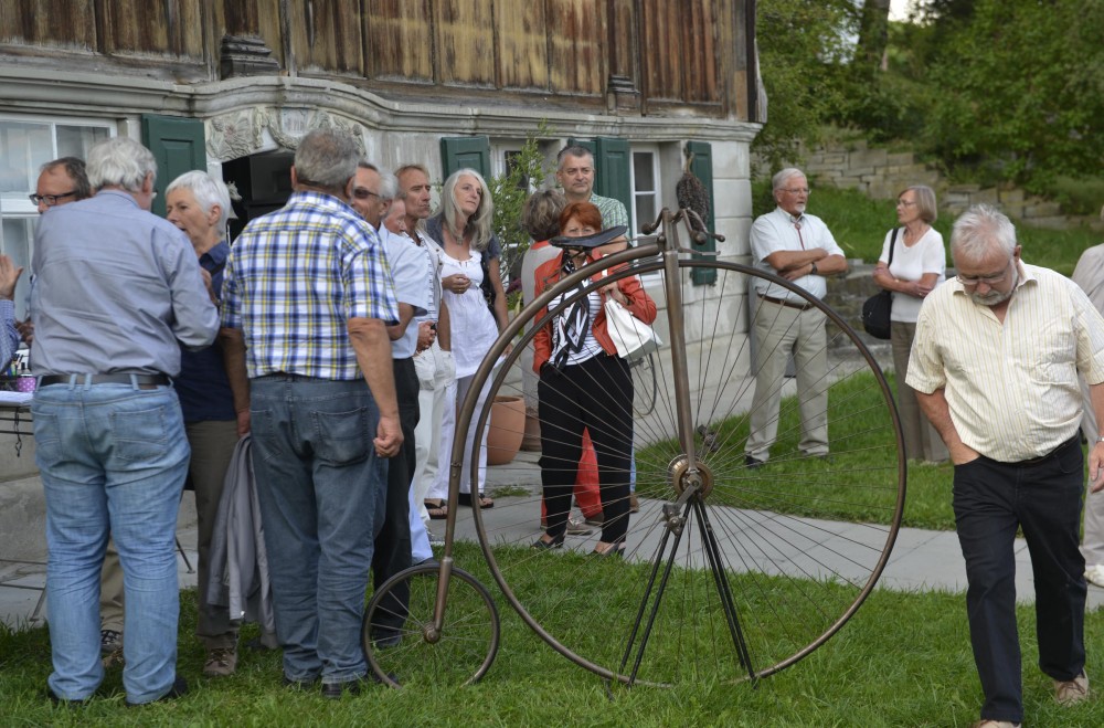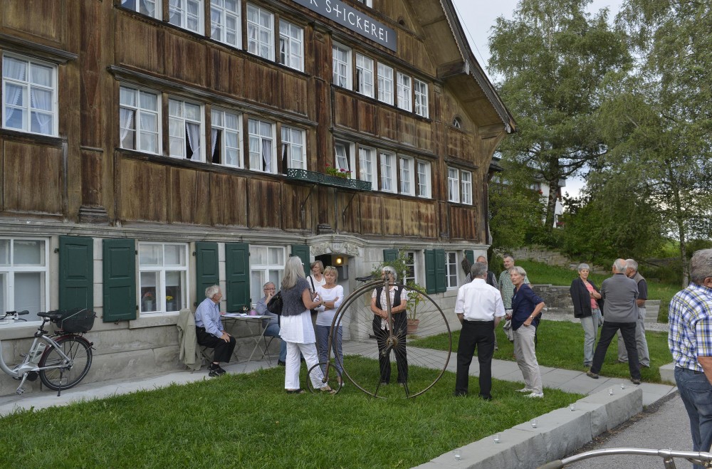 Im Haus zur Stickerei in Unterrechstein (AR) fand am Freitag, 23. August 2013 die Buchvernissage des Velomuseums Rehetobel statt. Es war ein würdiger und gleichzeitig erfrischender Rahmen, indem die Verantwortlichen des Velomuseums Rehetobel ihr Buch „Das Velo – die Erfolgsgeschichte der Fortbewegung“ einer breiteren Öffentlichkeit präsentieren konnten. Lange mussten die Freunde historischer Fahrräder auf dieses Werk warten, doch nun ist es auf dem Markt. Aus Platzgründen entschieden sich die Veranstalter den Anlass im Haus zur Stickerei in Unterrechstein durchzuführen. Im Nachhinein zeigte sich dieser Entscheid als korrekt, wird der Abend doch manch einem der Anwesenden positiv in Erinnerung bleiben.