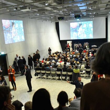 Rund 350 Gäste erlebten im Auditorium Willy G.S. Hirzel eine festlich, glamouröse Vernissage mit etlichen Ansprachen, unter ihnen Martin Leuthold, Creative Director bei der St.Galler Traditionsfirma Jakob Schlaepfer AG. Die Referate des Anlasses, der umrahmt von klassischer Musik war, beschäftigten sich mit den Begriffen Stil und Geschmack, was sich im Rahmen der Vernissage vorrangig im Bereich Textil abspielte. Ein Lob jenen, die sammeln, die archivieren und die Sammlungen aufbereiten sprach Martin Leuthold aus und betonte, dass die Vergangenheit uns helfe, die Zukunft zu gestalten.